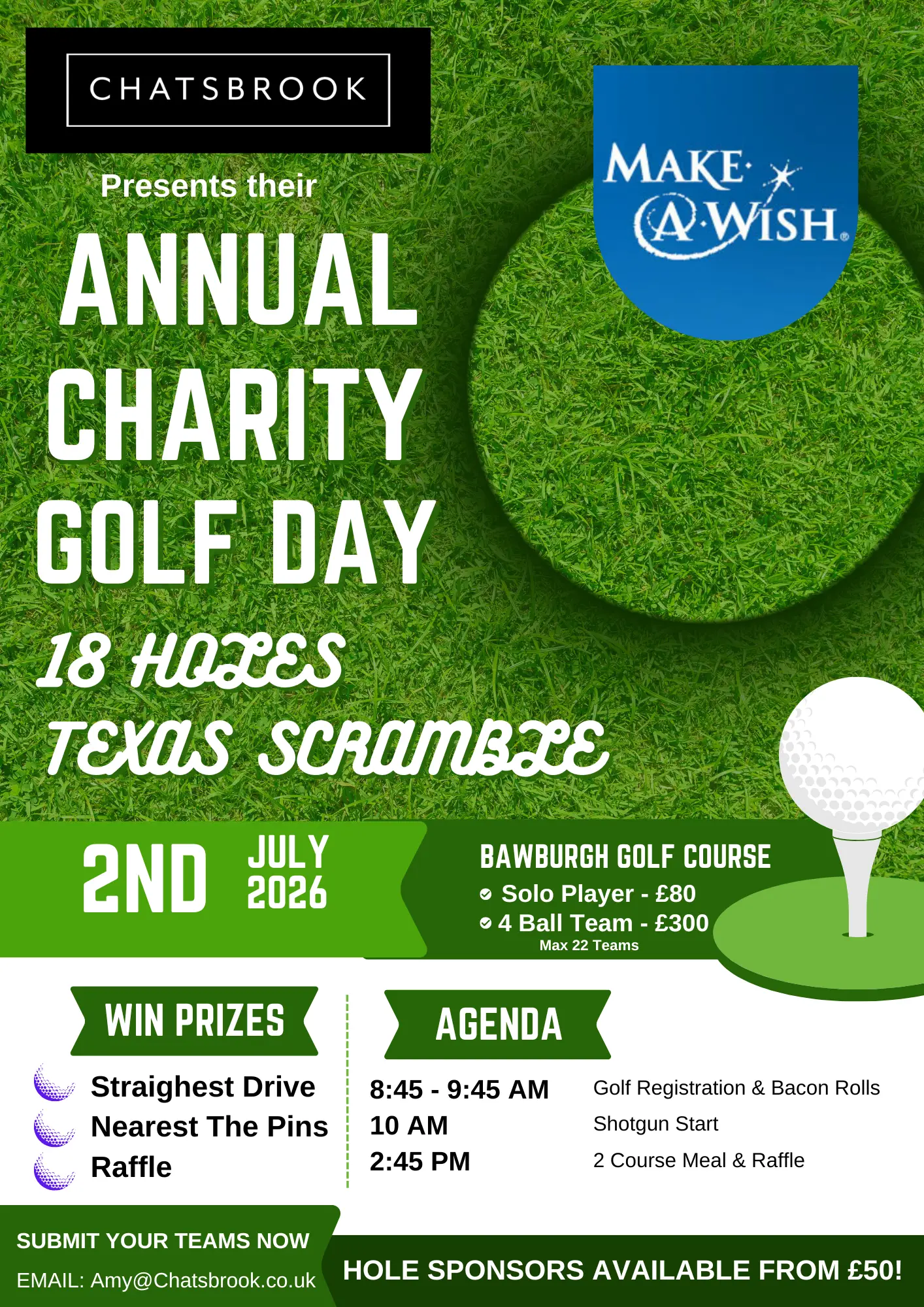 Exciting news! Chatsbrook invites you to our Annual Charity Golf Day in aid of GOSH. Join us for 18 holes